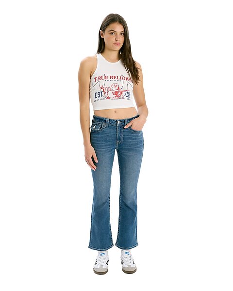 True Religion Mid Rise Kick Flare Flap Jeans (Naisten)