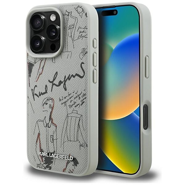 Karl Lagerfeld Grained Pattern & Logo MagSafe Kotelo for iPhone 16 Pro