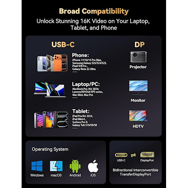 Tuotteen Nordic Nördic 131045589 USB-C - DisplayPort-kaapeli USB 2.1 16K60Hz 8K120Hz 2K/4K240Hz 80Gbps Thunderbolt 5/4/3 3m halvin hinta juuri nyt on 35,00 €. Hintaopas vertailee verkko- ja kivijalkakauppojen hintoja ja tarjouksia.