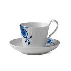 Royal Copenhagen Blue Fluted Mega Kahvikuppi aluslautasen kanssa 25cl