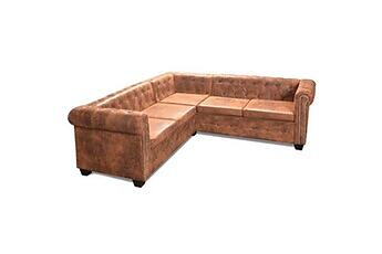 vidaXL Chesterfield Nurkkasohva Nahka (5-paikkainen)
