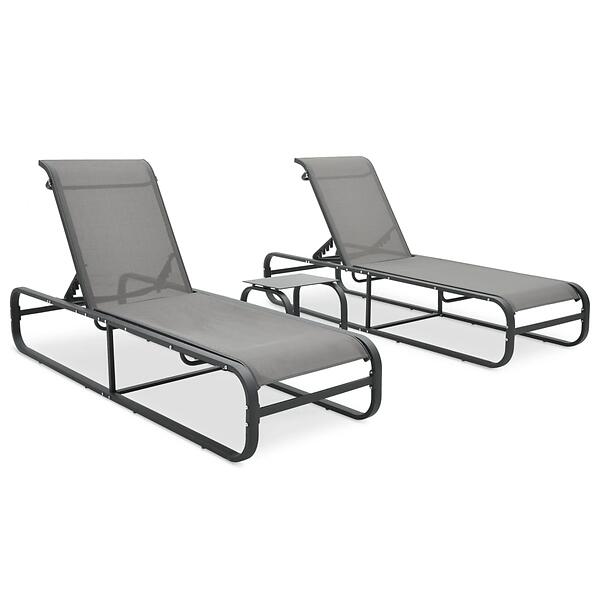 vidaXL Sun Loungers 2 pcs with Table Textilene and Aluminium