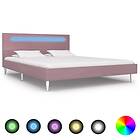 vidaXL Bed Frame with LED Pink Fabric 135x190 cm
