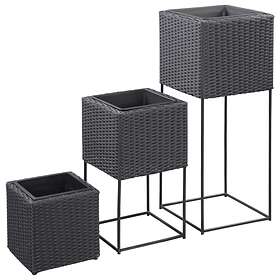 vidaXL Garden Raised Beds 3 pcs Poly Rattan Black