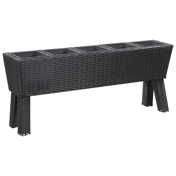 vidaXL Garden Raised Bed with Legs and 5 Pots 118x25x50 cm Poly Rattan Black