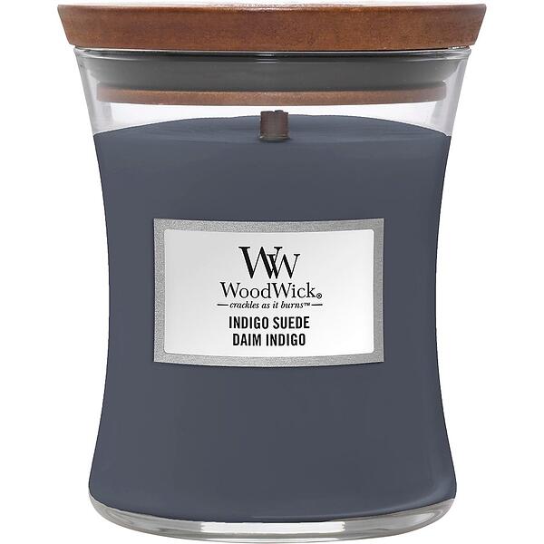 WoodWick Indigo Suede Keskikokoinen tuoksukynttilä