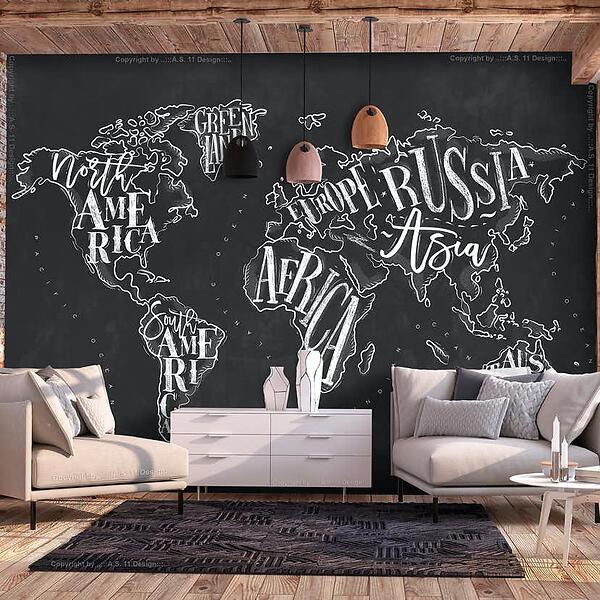 Arkiio Fototapet Retro Continents Svart (Black) 300x210
