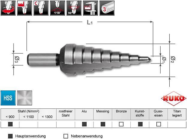 Ruko A101126RO Stegborrset 3 delar, i plastkassett