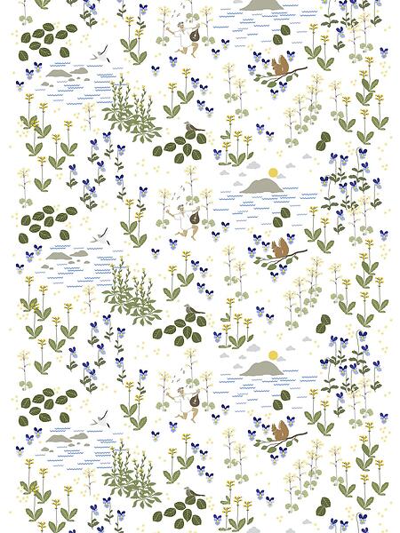 Arvidssons Textil Rönnerdahl Tyg Offwhite-Grön 150cm