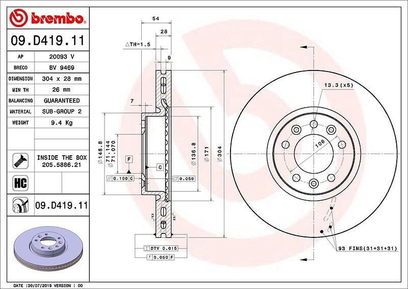 Brembo Bromsskiva COATED DISC LINE 09.D419.11
