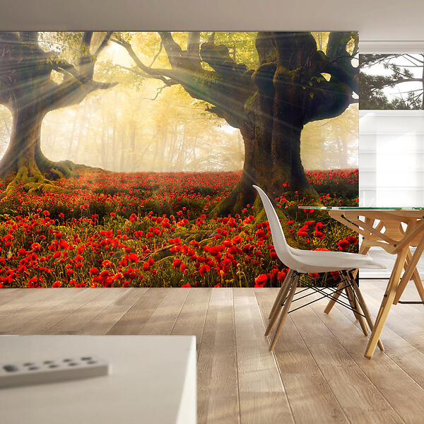 Artgeist Fototapet Morning Natur among poppies med motiv av monsun i och vallmo skogsbotten (flera storlekar) 200x140