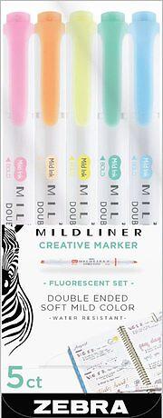 Markerpenna Zebra Mildliner dubbelspets Fluorescent 5 färger