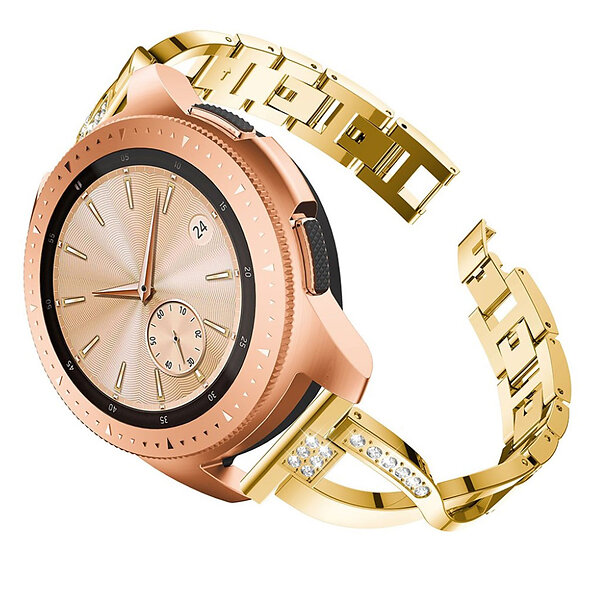 Lux-Case 20mm Universal X-shape rhinestone alloy watch strap Gold Guld