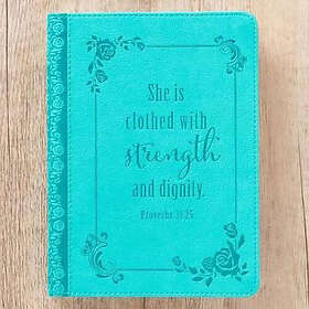 Christian Art Gifts: Strength and Dignity Turquoise Flexcover Journal Proverbs 31: 25