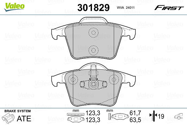 Valeo Bromsbeläggssats, skivbroms 301829