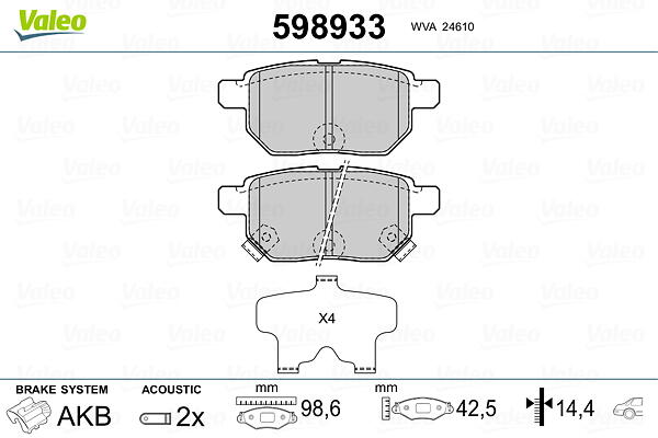 Valeo Bromsbeläggssats, skivbroms 598933