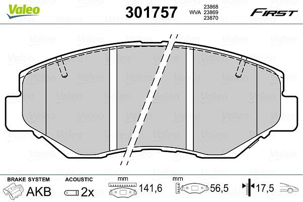 Valeo Bromsbeläggssats, skivbroms 301757