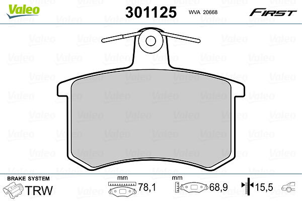 Valeo Bromsbeläggssats, skivbroms 301125