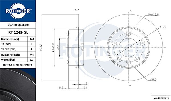 Rotinger Bromsskiva RT 1243-GL
