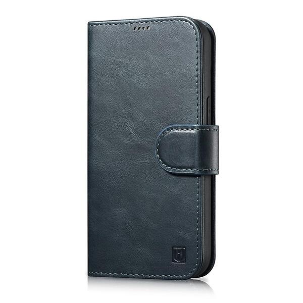iCarer oil Wax wallet case Läder iPhone Anti-RFID 14 Blå Plus flip cover IN1