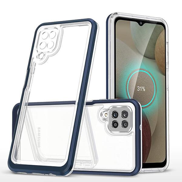 Samsung Genomskinligt A-One Brand 3-i-1 fodral för Galaxy Skal A12 Clear 5G 3in1 Frame Gel Cover Blå