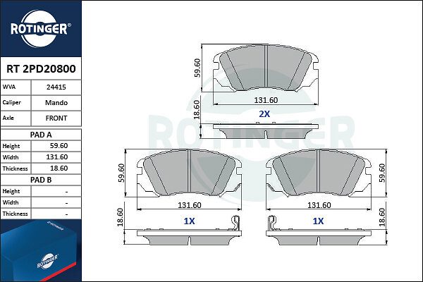 Rotinger Bromsbeläggssats, skivbroms RT 2PD20800