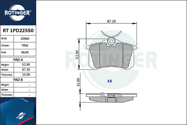 Rotinger Bromsbeläggssats, skivbroms RT 1PD22550