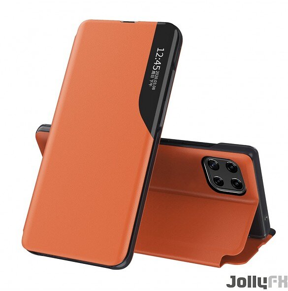 JollyFX Eco Leather View Case ett elegant fodral med flik och stativfunktion för Samsung Galaxy A22 4G Apelsin
