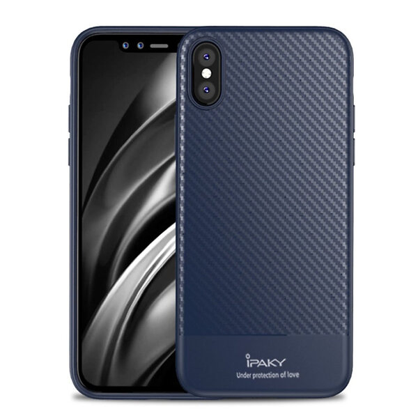Lux-Case IPAKY iPhone 9 Plus mobilskal silikon kolfibertextur Mörkblå Blå