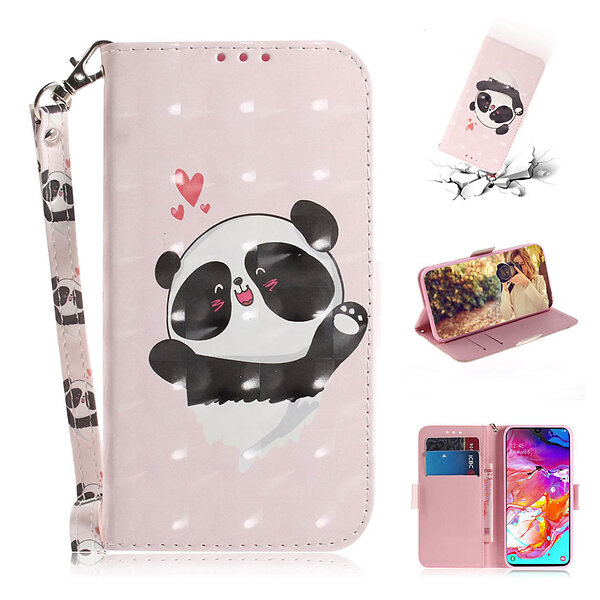 Lux-Case Galaxy A70 décor pattern leather case Panda and Hearts Flerfärgad