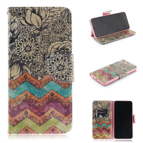 Lux-Case iPhone 9 Plus mobilfodral syntetläder silikon plånbok stående tryckmönster Retro blommor Flerfärgad