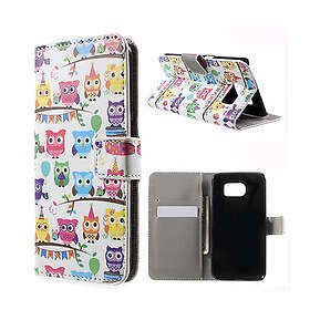 Lux-Case Moberg Galaxy S6 Läder Fodral med Korthållare Många Ugglor Flerfärgad