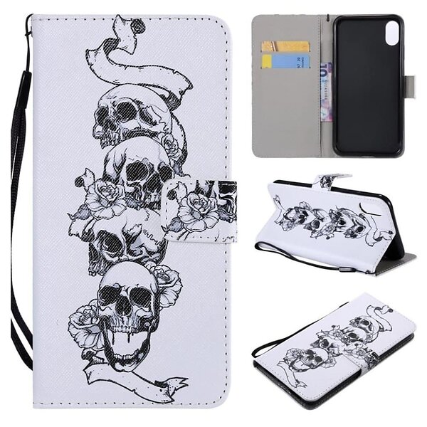 Lux-Case iPhone 9 Plus mobilfodral syntetläder silikon plånbok stående tryckmönster Döskalle och blommor Silver/Grå