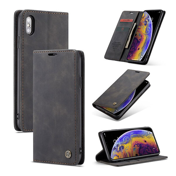 Lux-Case CASEME iPhone XS plånboksfodral i läder med auto-absorberande magnetstängning svart Svart
