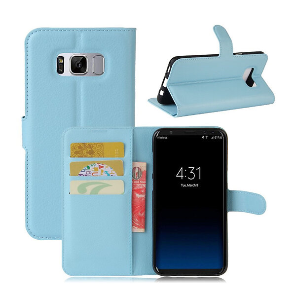 Lux-Case Galaxy S8 lychee läderfodral m. stativ Ljusblå Blå