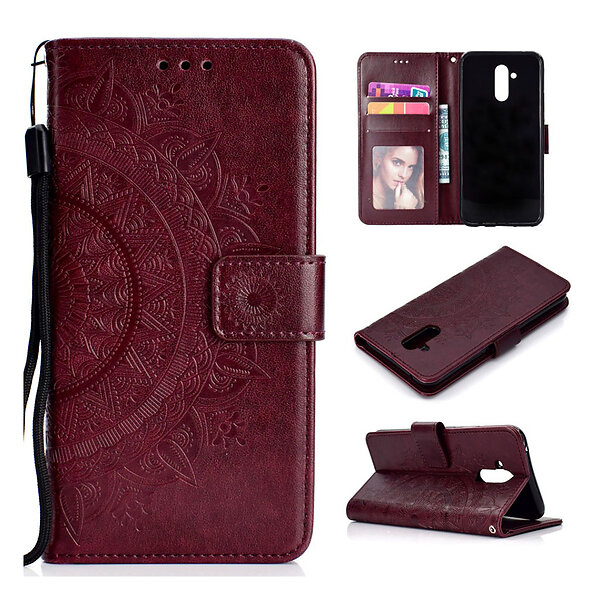 Lux-Case Mate 20 Lite imprint totem pattern leather flip case Brown Brun