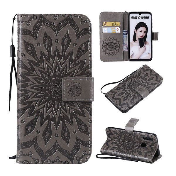 Lux-Case P Smart 2019 läderfodral med solrosavtryck Grå Silver/Grå