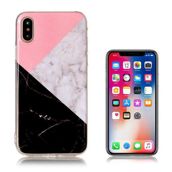 Lux-Case iPhone X Skal med marmor design svart vit rosa Flerfärgad