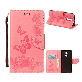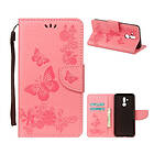 Lux-Case Mate 20 Lite syntet läder plånboks mobilfodral med fjärils bildmotiv Rosa