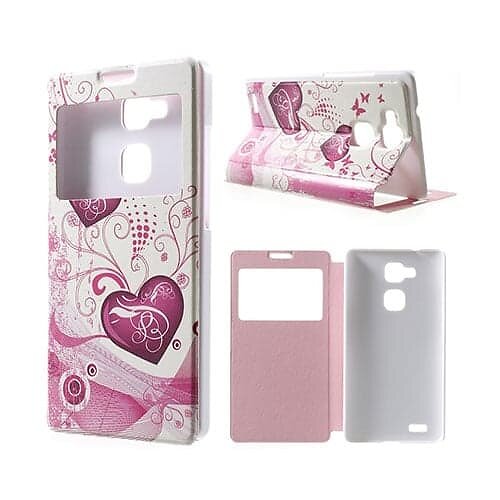 Lux-Case Moberg View Ascend Mate7 Läder Flip Fodral Hjärta Blommor Flerfärgad