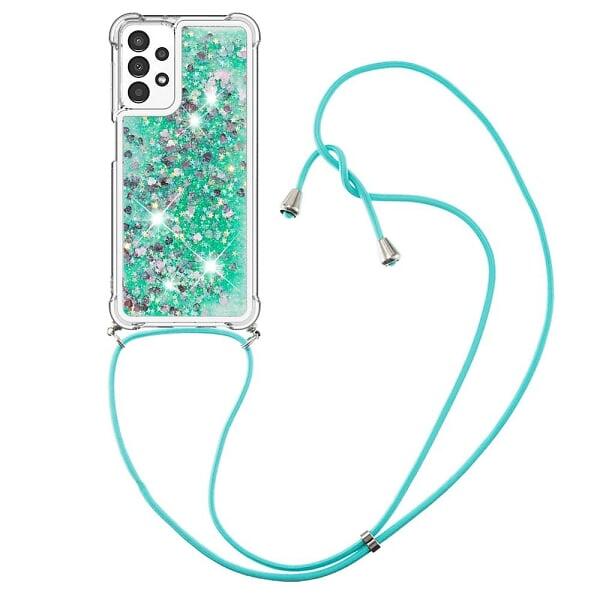 Skalo Samsung A13 4G Kvicksand Glitter Mobilhalsband Grön