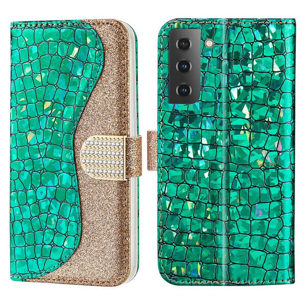 Skalo Samsung S22 Croco Glitter Plånboksfodral Grön