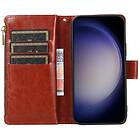 Dubbelflip Zipper 9-kort Galaxy S23 Ultra Brun