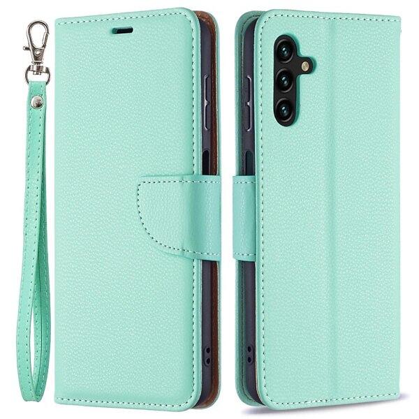 Skalo Samsung A13 5G Premium Litchi Plånbok Turkos