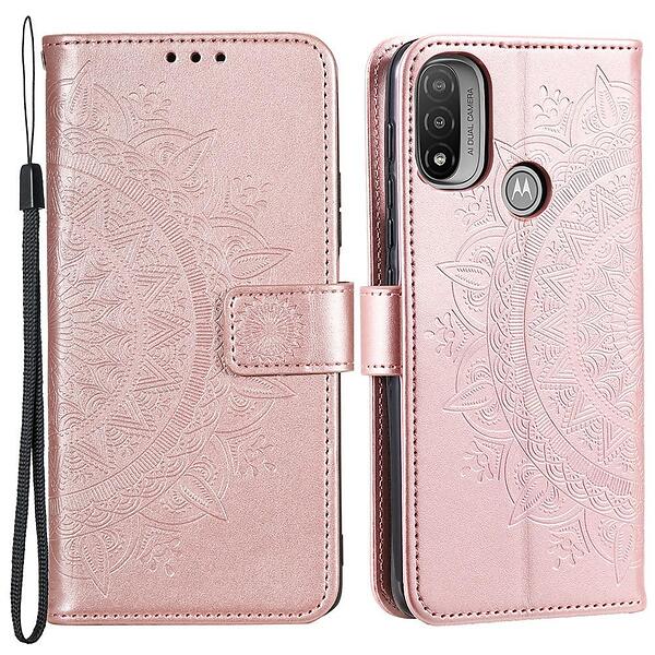 Skalo Moto E20/E30/E40 Mandala Plånboksfodral Roséguld