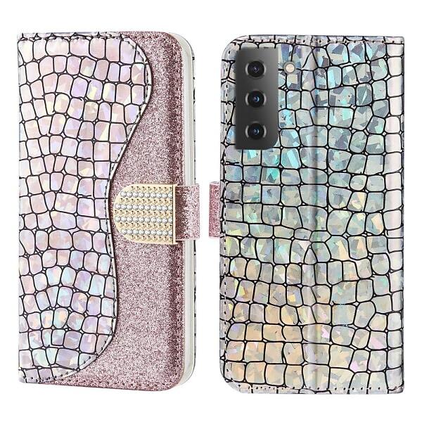 Skalo Samsung S22 Croco Glitter Plånboksfodral Roséguld