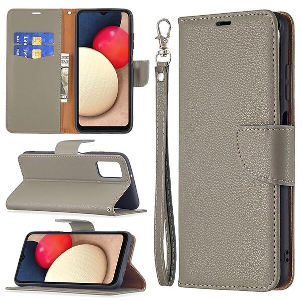 Skalo Samsung A02s / A03s Premium Litchi Plånbok Grå