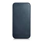 iCarer CE Oil Wax Premium Leather Folio Case iPhone 14 Plus Flip Magnetic Blue