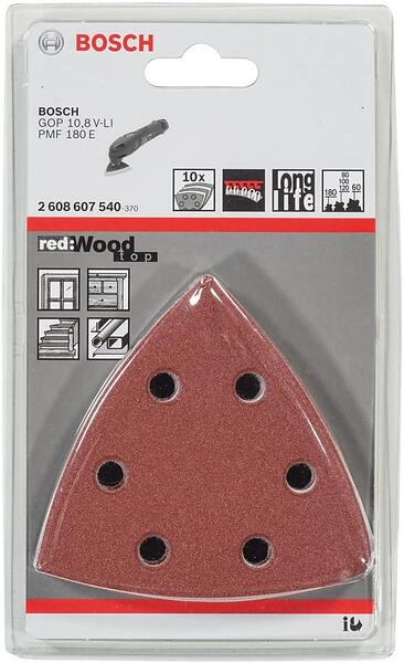 Bosch Accessories 2608607540 Deltaslippapper-set med kardborrband, perforerad Kornighet 60, 80, 120, 180, 240 Hörnmått 93 mm 1 set