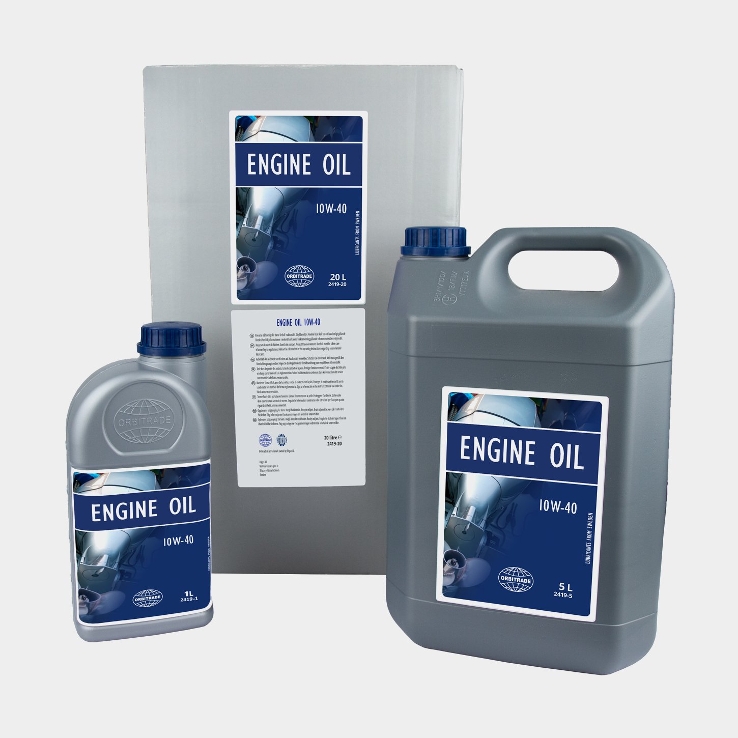 Puolisynteettinen öljy 4-tahtisiin sisä- & perämoottoreihin Orbitrade Engine Oil 10W-40, bensiini- & dieselmoottoreille, ACEA A3/B4 & API SN/SM/CF, 20 liter